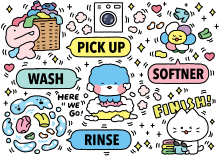 WASHZ is an animation-based character brand that reinterprets the unique concept of 'eco-friendly laundry' into a cheerful and lovable fantasy. It tells the story of five special washing machine fairies—Momo, Chacha, Coco, Pipi, and Popo—who live inside a washing machine and embark on exciting adventures to find stale odors and stubborn stains.